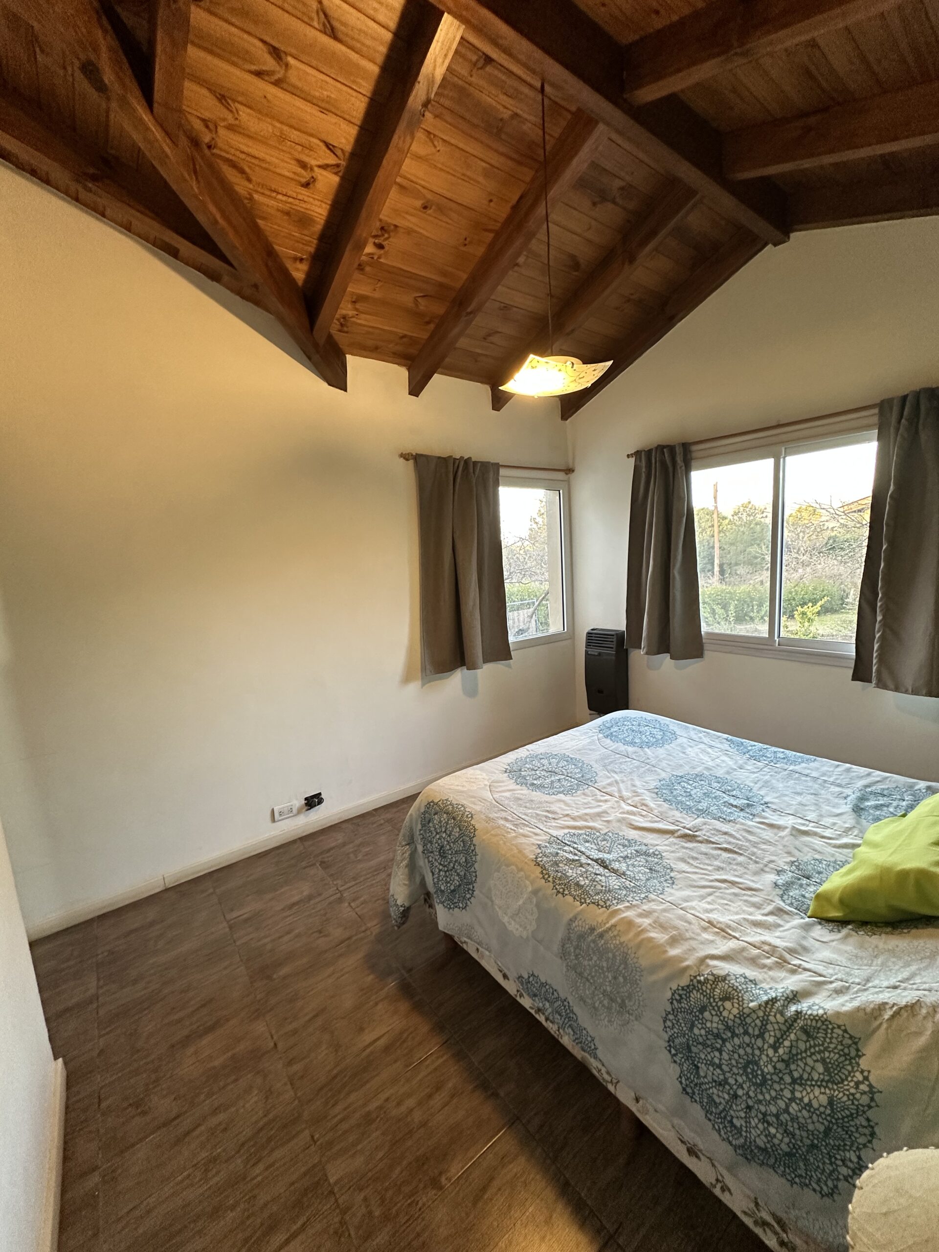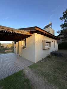 La vivienda dispone de dos dormitorios, uno con vestidor, dos baños, cocina comedor, quincho y sistema de calefacción, con ambientes funcionales y bien distribuidos.